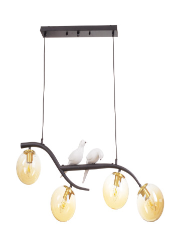 Потолочная люстра BR-01 637S/1 E27 + 2 G9 BK ; это современный модный светильник со стильным и оригинальным дизайном комбинированного цвета. Модель подойдет для спальни, гостиной, прихожей или кухни с современным интерьером. Конструктивно люстра состоит из двух, расположенных вертикально и горизонтально, металлических частей прутовидной формы черного цвета, перпендикулярно соединенных между собой. На горизонтальной секции расположены: конусообразный плафон золотистого цвета направленный вниз, два шарообразных плафона белого цвета направленные вверх и две белые декоративные птички. Вертикальная секция выходит из основания светильника круглой формы, которая крепится к потолку с помощью монтажной планки. В качестве источников света используются две лампочки с цоколем G9 мощностью 40 Вт и одна лампочка с цоколем Е27 мощностью 60 Вт. Это могут быть светодиодные, галогенные, энергосберегающие или лампы накаливания. Использование светодиодных позволит значительно снизить расход электроэнергии. К тому же, светодиодные элементы имеют длительный срок работы, почти не греются, излучают комфортный свет, не вредят здоровью и не требуют специальной утилизации. Люстра предназначена для эксплуатации в сети переменного тока с номинальным напряжением 220 В. Уровень защиты корпуса от попадания внутрь пыли и влаги ; IP20. Габариты светильника ; 100х70 см. Дизайн люстры делает модель подходящей для интерьеров, оформленных в современных стилях.
