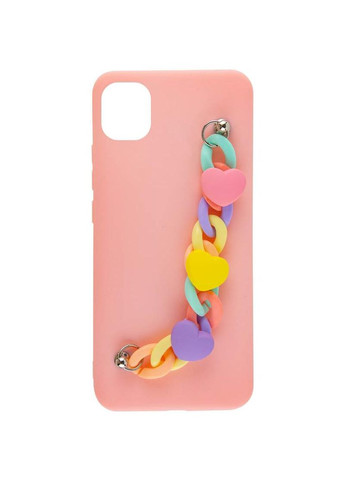 Тыльная сторона украшена объемной цветной цепочкой с красивыми сердечками.