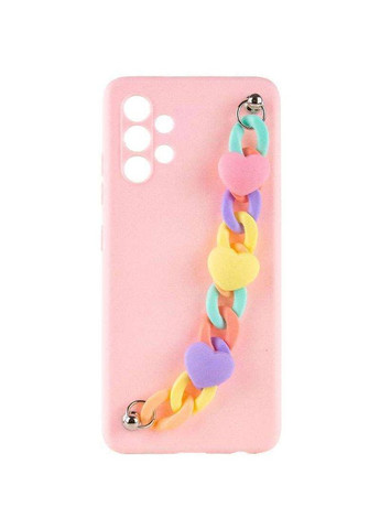 Тыльная сторона украшена объемной цветной цепочкой с красивыми сердечками.