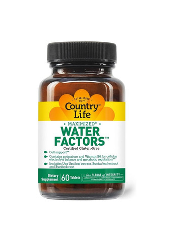 Country Life Water Factors - это травяная смесь со специализированными травами, такими как экстракт листьев Uva Ursi и экстракт Buchu. Water Factors содержит калий и витамин B6 для баланса клеточного электролита и регуляции обмена веществ.Особенности:поддержание водного баланса;восполнение электролитов;поддержание энергетического потенциала;уменьшение усталости;поддержание нормального метаболизма;помощь в восстановлении после тренировок.Калий — это минерал, который необходим организму для нормальной работы. Он помогает нервам и мышцам общаться. Он также помогает перемещать питательные вещества в клетки и продукты жизнедеятельности из клеток.Как принимать:Взрослым принимать по две (2) таблетки в день во время еды.Содержание элементов в 1й порции2 таблетки, Витамин В6 (пиридоксин гидрохлорид) 100 мг, Хлор (электролит) 196 мг, Калий (хлорид калия, хелат аминокислоты калия [на основе рисового белка]) 198 мг, Botanical Blend: 250 мг , Лопух (корень), экстракт Uva Ursi (листья), экстракт Buchu 4:1 (листья), мальтодекстрин, Ингредиенты, Целлюлоза, стеариновая кислота, органическое покрытие (тапиоковый мальтодекстрин, лецитин подсолнечника, экологичное пальмовое масло, гуаровая камедь), диоксид кремния.
