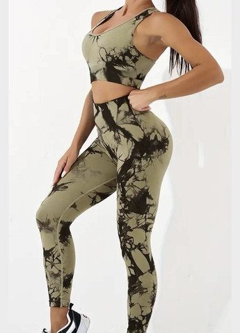 Бесшовный костюм для фитнеса тай-дай с пуш-ап эффектом. Эластичная, мягкая ткань, высокая талия. Топ с вынимающимися чашечками.