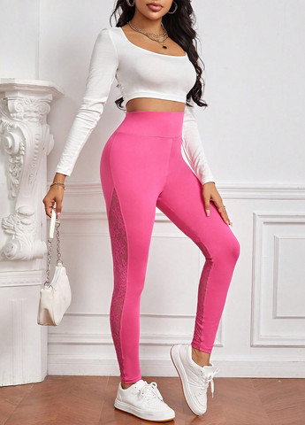 Shein Essnce Contrast Lace Wideband Waist Leggings — это повседневные трикотажные леггинсы с высокой талией. Они слегка растягиваются для комфорта.