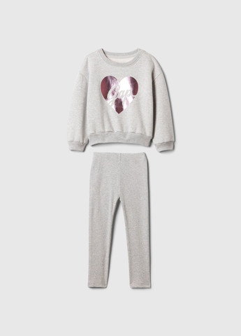 Детский костюм GAP. Очень стильный и нежный костюм для девочек. В комплект входит: свитшот и леггинсы. Свитшот с круглым вырезом. Длинные рукава. Эластичные манжеты, горловина и подол в рубчик. Спереди логотип бренда. Свитшот утеплен внутри флисом. Леггинсы из эластичной ткани в рубчик. Лосины без утеплителя. Отличное качество.