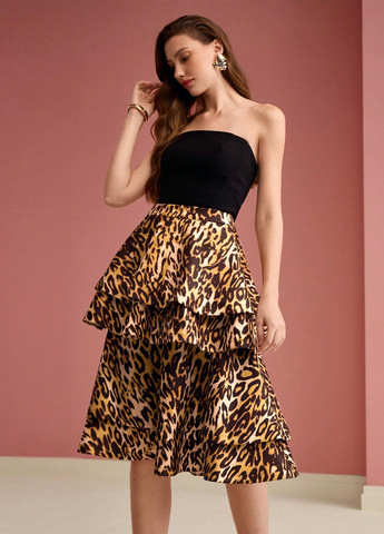 Эта юбка с высокой талией создана для женщин с формами. Она имеет привлекательный леопардовый принт. Юбка подходит для повседневной носки весной, осенью и зимой. Она подходит как для дневного времени, так и для особых случаев, таких как Рождество и Новый год. Ткань не тянется и имеет стандартный крой.