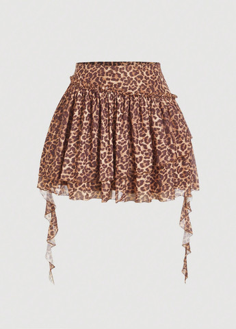 Этот наряд включает в себя укороченный топ и пышную юбку. Верх украшен асимметричной оборкой и объемным цветочным узором. Юбка имеет асимметричный подол. Он создан для вечеринок. Верх имеет асимметричный вырез. Ткань средней эластичности. Верх украшен леопардовым, змеиным принтом или принтом по всей поверхности. Посадка тонкая. Низ – юбка.