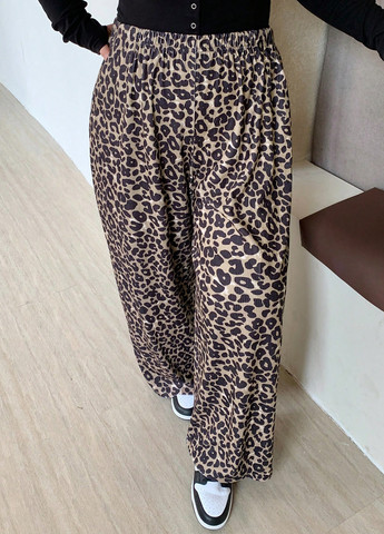 Цвет Коричневый / Материал Полиэстер / Фасон Прямые / Высота посадки Средняя талия / Узор Леопардовый