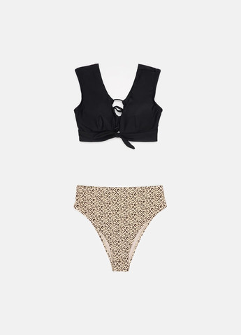 Купальный сет из топа и трусиков. Топ однотонный, завязки на спинке, трусики леопардового принта с довольно высокой посадкой. Возможно повреждение бирки