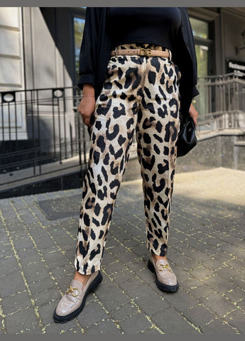 Женский брючный костюм с леопардовым принтом - идеальный выбор для зимнего сезона. Рубашка на пуговицах с нагрудным карманом, рукава на манжетах. Брюки с эластичной талией на резинке, двумя карманами и манжетами внизу. Материал - тринитка на флисе. Идеально подходит для прохладной погоды в Украине.