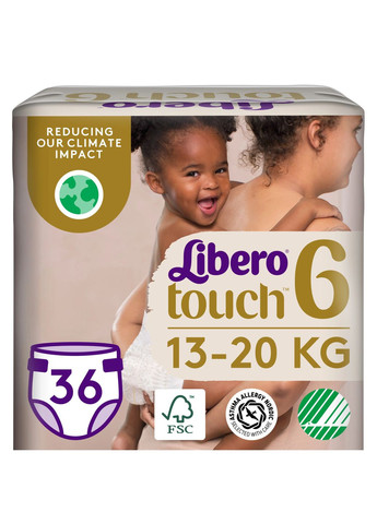 Трусы Libero Touch – это наши лучшие подгузники-трусики, созданные для малышей, начинающих активно двигаться. Несмотря на то, что трусики тонкие, они эффективно впитывают влагу. Самые мягкие, тонкие и лучшие для кожи вашего малыша в ассортименте Libero Гибкие для активных малышей Суперпоглощающий, тонкий слой для удобной посадки благодаря сердцевине с канальцами Мягкие и дышащие материалы вокруг всего подгузника Легко одеть и снять Индикатор влаги Только 60% производстве Двойные барьерчики вокруг ножек Без лосьонов Дерматологически протестированные Сертификат Nordic Swan Ecolabel Сертификат Asthma Allergy Nordic Сертификат FSC Весь ассортимент гибких подгузников-трусиков не содержит лосьонов и прошел дерматологические тестирования, имеет сертификат Norydic. Кроме того, он изготовлен из FSC-сертифицированной целлюлозы. Продолжая путь снижения влияния Libero на климат, более 60% упаковки подгузников изготовлено из переработанного пластика. Мы добавляем обновляемые материалы для производства подгузников, что помогает уменьшить углеродный след Libero. На фабриках по производству подгузников Libero используется только сертифицированная возобновляемая электроэнергия. Производитель может изменять свойства, характеристики, внешний вид и комплектацию товаров без уведомления.