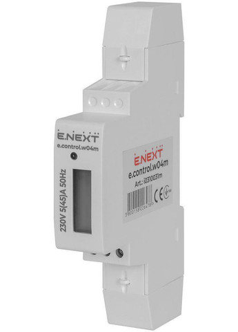 E.Next — европейский бренд современного электротехнического оборудования E.Next — международная компания со штаб-квартирой в Европе, специализирующаяся на разработке и поставке комплексных решений в области электротехники, автоматизации и энергообеспечения. Продукция бренда ориентирована на потребности современной промышленности, строительства, энергетики, а также жилого и коммерческого секторов. Компания активно развивает собственные производственные площадки и инжиниринговые центры в различных странах Европы и Азии, что позволяет контролировать качество на всех этапах — от проектирования до конечного изделия. Бренд отличается отличным соотношением цены и качества, современным дизайном, а также адаптацией решений к условиям эксплуатации в странах Восточной Европы. В портфеле E.Next сегодня присутствующие: автоматические выключатели и защитные устройства, электрощитовое оборудование, пускорегулирующая аппаратура, модульные системы автоматизации, промышленные разъемы, кабельно-проводниковая продукция и освещение Счетчик электроэнергии 1-однофазный E.Next e.control.w04m 5(45)А класс 1.0 (некоммерческий) Счетчик электроэнергии E.Next e.control.w04m — это электронный однофазный счетчик, разработанный для точного учета потребляемой электроэнергии в однофазных сетях переменного тока. Устройство предназначено только для внутреннего учета, что делает его идеальным для домашних или частных использований, где не требуется расчет энергоснабжениями. Счетчик имеет класс точности 1.0, что гарантирует высокую точность измерений. Технические характеристики Максимальный рабочий ток: 45 А, что позволяет применять счетчик в различных бытовых и промышленных условиях. Номинальное рабочее напряжение: 230 В (AC), что стандартно для большинства однофазных сетей. Класс точности: 1.0 — обеспечивает точные данные о потреблении электроэнергию. Диапазон измерений: от 0 до 99999,99 кВт*ч, подходящий для широкого спектра потребителей. Температурный диапазон: от -20 до +60°C, что позволяет использовать устройство в различных климатических условиях. Монтаж: производится на стандартную DIN-рейку 35 мм, что облегчает установку. Степень защиты: IP20 — счетчик имеет защиту от твердых частиц размером более 12 мм, что делает его безопасным для использования в домашних условиях. Счетчик E.Next e.control.w04m оснащен возможностью пломбирования для обеспечения защиты от несанкционированного вмешательства. Его рабочее положение не ограничено, что позволяет легко устанавливать устройство в различных условиях. Преимущества: Низкое потребление энергии — всего 1 Вт / 10 ВА, что обеспечивает экономичность использования. Компактный размер - габариты 62,5 мм (длина) x 116 мм (высота) x 18 мм (ширина) позволяют разместить счетчик даже в ограниченных пространствах. Долговечность и надежность — стандарт ДСТУ EN 60730-1 гарантирует соответствие международным требованиям качества. Этот счетчик является идеальным выбором для тех, кто ищет надежный и точный прибор для учета потребляемой электроэнергии в пределах дома или небольшого предприятия.