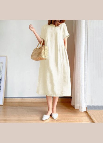 Это платье средней длины, выполненное в нежно-белом цвете. Оно имеет свободный крой и короткие рукава. Платье идеально подойдет для летних прогулок благодаря своей легкости и воздушности. Замеры: Размер | Обхват груди (см) | Длина (см) M: 96 | 104 L: 100 | 105 XL: 104 | 106 2XL: 108 | 107 3XL: 110 | 108 4XL: 114 | 109