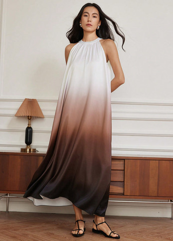 Элегантное летнее платье Dazy-Less. Это длинное платье с принтом по всей поверхности. Вырез халтер и расклешенный подол. Платье выполнено из полиэстера. Подходит для повседневных случаев. Свободный крой, без подкладки.