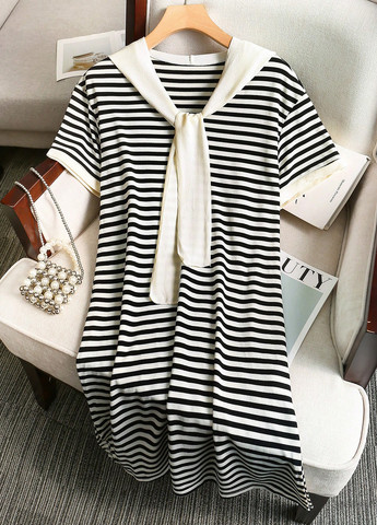 Женское платье в полоску Franclia. Это повседневное летнее платье с капюшоном и полосатым узором. Оно изготовлено из трикотажного полотна на основе полиэстера и эластана. Платье имеет короткие рукава и свободный крой. Подходит для повседневной носки. Можно стирать в стиральной машине или чистить в химчистке.