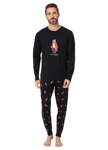Мужская пижама Polo Ralph Lauren. Комплект для сна из мягкого хлопкового трикотажа Polo Ralph Lauren включает лонгслив и удобные джоггеры. Удобная мягкая пижама не стесняет движения. Очень мягкий материал пижамы. Лонгслив с круглым вырезом. Джоггеры с эластичным поясом на завязках. Пояс с нашивкой в виде логотипа бренда. Два кармана по бокам.  Принт в виде ферменного медведя украшает лонгслив спереди и штаны по всей поверхности. Отличное качество.