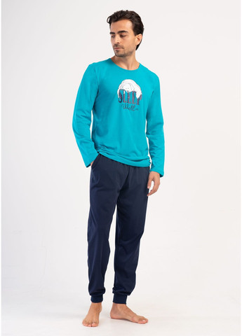 Пижама хлопковая мужская большого размера (лонгслив, штаны)