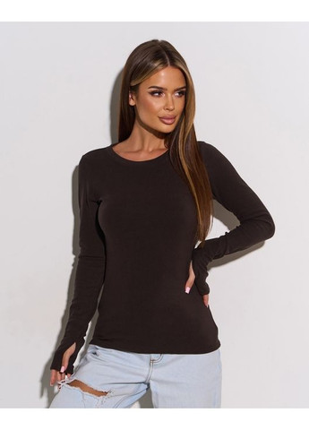 Темно-зеленый лонгслив укороченного облегающего кроя с полукруглой проемом горловины. Лонгслив с длинными рукавами, декорированными вырезами для больших пальцев. Изделие выполнено из трикотажного рубчика. Полуобхват: Грудь: S(38), M(40), L(42), XL(44), Длина изделия - 52, Рукав - 71, Ткань: Средней эластичности.