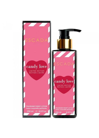 Группы ароматов Сладкие Фруктовые Цветочные Ноты аромата Ваниль Взбитые сливки Карамелизированное яблоко Роза Бренд Escada Модель Candy Love Пол Женский Объем 250 мл Год выпуска 2020 Страна производитель Объединённые Арабские Эмираты Тип кожи Все типы Дополнительный эффект Интенсивный аромат Назначение Ароматизация, Тонизация, Увлажняет и смягчает Упаковка средства Флакон с дозатором