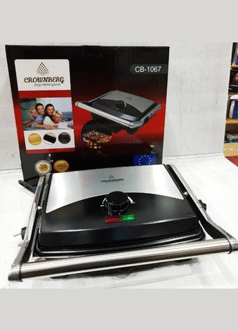 Электрогриль прижимной Crownberg CB-1067 антипригарное покрытие лоток для жира 2000 Вт Электрогриль с терморегулятором Crownberg CB-1067 предназначен для использования в домашних условиях. Отличительной особенностью данной модели является наличие терморегулятора, поддона для сбора лишней жидкости и жира. С помощью компактного мощного электрического гриля Crownberg CB-1067 вы сможете приготовить вкуснейшие мясные стейки, обжарить овощи или рыбу, а также порадовать своих родных и близких горячими сендвичами. Рифленые пластины обеспечивают равномерную обжарку ингредиентов при минимальном использовании жира. Гриль данной модели станет незаменимым помощником и стильным дополнением на вашей кухне. Приготовление блюд на гриле не требуют использования масла, что позволяет готовить более полезные блюда. Имея дома гриль, вы сможете разнообразить рацион, попробовать что-то новое, например, даже самое обычное мясо или овощи имеют совершенно другой вкус, более насыщенный и натуральный. Crownberg CB 1067 – хороший вариант для домашнего пользования, оснащен терморегулятором, имеет керамическое антипригарное покрытие, корпус выполнен в стильном дизайне с использованием качественной нержавеющей стали. Преимущества: удобная ручка плавающая шарнирная система индикаторы работы регулировка нагрева рабочей части компактность простота использования вкусная и полезная пища Характеристики: Модель: Crownberg CB1067 Мощность: 2000 Вт Терморегулятор Крышка: на кронштейне Материал корпуса: пластик, нержавеющая сталь Поддон для сбора лишней жидкости и жира Быстрое приготовление пищи Гриль-пластины с антипригарным покрытием Большая теплоизолированная ручка 2 световых индикатора для контроля сети и нагрева Источник питания: 220-240 В, 50/60 Гц Размер рабочей поверхности: 30 Х 22 см