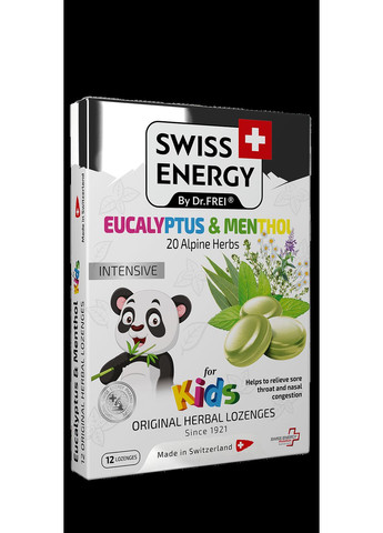 Herbal Lozenges Blister 20 herbs + Eucalyptus and Menthol Kids от Swiss Energy — это натуральные леденцы, разработанные специально с учётом потребностей детей Содержат природный эвкалипт и ментол Снимают заложенность носа и смягчают горло Традиционный швейцарский рецепт из 20 альпийских трав Приятный вкус для детей