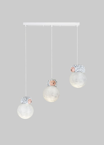 Очаровательная люстра станет идеальным выбором для детской комнаты, создавая теплую и уютную атмосферу. Ее плафоны из 3D-пластика, напоминающие лунную поверхность, в сочетании с милыми гипсовыми фигурками ягнят, делают люстру оригинальным украшением интерьера. Количество плафонов: 3 Материал плафонов: пластик (3D) Диаметр плафона: 15 см Материал фигурок: гипс Дизайн фигурок: ягненок Цвет: белый Потолочное основание: круг диаметром 30 см Источник света: 3 лампы E-27 Максимальная мощность ламп: 60 Вт Уникальный 3D-дизайн плафонов, создающий эффект лунной поверхности. Фигурки ягнят добавляют обаяния и тепла интерьеру. Высококачественные материалы обеспечивают долговечность. Простота установки позволяет использовать в любых помещениях.
