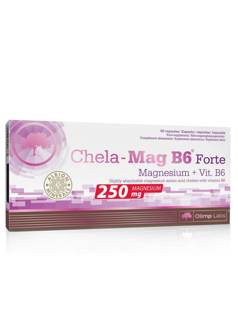 Olimp Chela-Mag B6 Forte - это добавка, содержащая легко усваиваемый магний в сочетании с витамином B6. Комбинация этих двух компонентов имеет двойной эффект в улучшении работы нервной системы, особенно в состояниях гиперактивности, недостаточной концентрации и повышенной подверженности стрессу.Помимо огромного влияния на функционирование нервной системы, магний также играет важную роль в функционировании сердечно-сосудистой системы.Как принимать:Добавку лучше всего использовать в количестве 1 капсулы в день после выбранного приема пищиСодержание элементов в 1й порции1 капсула, Хелат магния 250 мг, Витамин В6 2 мг, Ингредиенты, магний (магний аминокислота хелат ALBION), мальтодекстрин, стеарат магния, Витамин B6, капсула- желатин.