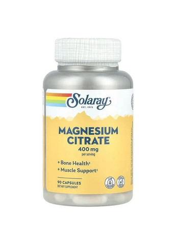 Цитрат магния Solaray 400 мг 90 вегетарианских капсул — это эффективная добавка, предназначенная для поддержания оптимального уровня магния в организме. Магний — важный минерал, необходимый для множества функций, включая синтез белка, работу мышц и нервов, регулирование уровня сахара в крови и поддержание артериального давления. Цитрат магния является легко усваиваемой формой, что обеспечивает быстрое и эффективное поглощение этого минерала организмом. Магний играет ключевую роль в поддержании здоровья костей и зубов, помогая в усвоении кальция. Без достаточного количества магния кальций не может эффективно интегрироваться в костную ткань, что увеличивает риск развития остеопороза и других заболеваний костей. Магний также необходим для правильного функционирования мышц, предотвращая спазмы и судороги. Это особенно важно для людей, занимающихся спортом или ведущих активный образ жизни. Кроме того, магний играет важную роль в поддержании нормального уровня сахара в крови и предотвращении развития диабета. Он участвует в метаболизме углеводов и помогает поддерживать стабильный уровень глюкозы. Дефицит магния может привести к ухудшению чувствительности к инсулину и повышению риска развития диабета 2 типа. Магний также важен для здоровья сердечно-сосудистой системы. Он помогает регулировать сердечный ритм и поддерживать нормальное артериальное давление. Недостаток магния может привести к повышенному риску сердечно-сосудистых заболеваний, включая гипертонию и аритмию. Для нервной системы магний является важным элементом, который помогает снижать уровень стресса и тревожности, улучшать качество сна и поддерживать хорошее настроение. Он участвует в передаче нервных импульсов и помогает поддерживать нервные клетки в здоровом состоянии. Люди, страдающие от бессонницы, раздражительности или частого стресса, могут заметить значительное улучшение после начала регулярного приема магния. Цитрат магния Solaray 400 мг 90 вегетарианских капсул — это ваш надежный союзник в поддержании здоровья и жизненной энергии. Эта добавка помогает предотвратить дефицит магния, улучшает работу мышц и нервной системы, поддерживает здоровье костей и сердца. Выбирайте цитрат магния от Solaray, чтобы чувствовать себя активным, бодрым и здоровым. Рекомендации по применению Применять только согласно указаниям. Принимайте 3 вегетарианские капсулы в день, предпочтительно вместе с пищей. Состав Размер порции: 3 растительные капсулы Количество порций в упаковке: 30 Количество в 1 порции % от суточной нормы Магний (в форме цитрата магния) 400 мг 95% Дополнительные ингредиенты: капсула из растительной целлюлозы, целлюлоза, стеарат магния, листья жерухи, корень одуванчика, листья люцерны и листья петрушки. Предупреждение Не использовать, если защитная мембрана повреждена или отсутствует. Хранить вне досягаемости детей. Проинформируйте своего лечащего врача об использовании этого продукта. Хранить в прохладном, сухом месте.
