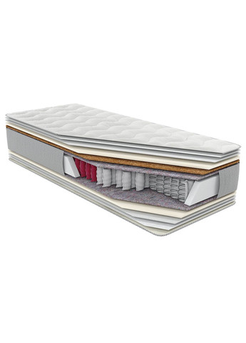 Двусторонний матрас Notte Магнум Кокос сочетает среднюю и высокую жесткость. Первая возможна благодаря слою упругого синтепона. А вторая – за счет прослойки латексированной кокосовой койры. В основании находится блок независимых пружин Pocket Spring, отделенный от настилочных слоев термовойлоком. Изделие обито надежным текстилем, который устойчив к истиранию и долго сохраняет первоначальный внешний вид. Матрас высотой 18,5 см выдерживает до 120 кг веса. Здесь даже при максимальной нагрузке исключена деформация и проседания. Гарантия 2,5 года. Основа матраса: Pocket Spring Блок независимых пружин с тремя зонами жесткости, спроектированный с учетом физиологии человека. При его изготовлении мы чередуем усиленную и деликатную поддержку, чтобы сохранить правильное положение позвоночника во время сна. Пенополиурета Сочетает все то, что вы ищете в матрасе: ортопедические и анатомические свойства, прочность, упругость, гипоаллергенность, износоустойчивость. В нем исключено появление пылевых клещей и демодексов, так как здесь нет элементов, которые могли бы поддерживать их жизнедеятельность. Материал также довольно вынослив и хорошо воспринимает циклические нагрузки. Кокосовая кой Экологически чистый, гипоаллергенный, воздухопроницаемый материал. За счет латексирования материал приобрел упругость, эластичность и устойчивость к деформациям. Латекс позволяет блоку койры не крошиться и не рассыпаться. Если вы ищете матрас с повышенной жесткостью, но вто же время упругий, обратите внимание на модель с койрой. Термовойлок Изолирующий слой толщиной 3-4 мм, который отделяет пружинный блок от материалов. Благодаря плотности и прочности термовойлок контролирует одинаковое давление пружин на человеческое тело по всей поверхности матраса. Таким образом матрас становится более комфортным и сохраняет нужный уровень жесткости. Состав термовойлока – это комбинация натуральных и регенерированных тканевых волокон, соединенных при помощи температуры и давления. Материал экологически безопасен и гипоаллергенен. Hot melt Технология скрепления настилочных слоев термоклеем. Расплавленный в специальной емкости клей под давлением подается в промышленный пистолет, и затем равномерно распыляется в виде паутины. Используемый компанией Come-for клей экологичен, не имеет запаха и безопасен для вашего здоровья. Трикотаж Качественный текстиль, производимый на турецкой фабрике и соответствующий высоким требованиям к качеству. Он покоряет невероятно приятной текстурой и доказывает правильность выбора отличной износостойкостью. Он не мнется, не склонен к истираемости и выцветанию. А за счет высокой воздухопроницаемости он подарит одинаково комфортные ощущения зимой и летом, независимо от температуры и влажности в помещении. Синтепон Нетканый материал с объемной пышной структурой. Синтепон сочетает в себе мягкость и прочность, и используется в качестве наполнителя при производстве стеганой ткани, тем самым увеличивая мягкость изделия. Спанбонд Нетканый искусственный материал широкой гаммы цветов. Он сочетает прочность, легкость, износостойкость и воздухопропускаемость. Именно благодаря этим качествам мы используем спанбонд для производства пружинного блока Pocket Spring. Из этого материала пошиты индивидуальные чехлы, которые защищают пружины и обеспечива