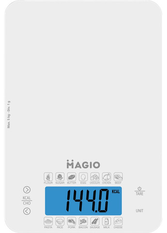 Весы кухонные электронные Magio MG-696 Тип: электронные Конструкция: плоская платформа Материал платформы: крепкое стекло Размер весов: 15*22 см Тип экрана: LCD Размер экрана: 54*28,5 мм Максимальная нагрузка: 5 кг Цена деления: 1 г Выбор единиц измерения Индука низкого заряда батареи Автоматическое выключение Тип батарей: батарея 1*CR2032 (в комплекте) Определение калорийности 14 продуктов: мука, сахар, масло, яйца, шоколад, курятина, говядина, макароны, рис, свинина, бекон, колбаса, 6 сыр вашей кухне. Платформа изготовлена из стекла, весы оборудованы индикатором перегрузки — при превышении допустимой нагрузки на дисплее отображается символьное предупреждение. Функция тарокомпенсации повышает точность измерения кухонных весов, она позволяет не учитывать результаты взвешивания массы посуды, в которой содержатся продукты. Точность взвешивания и дизайна органично впишутся в любой кухонный интерьер. Автоматическое отключение отключает питание весов. Электронные кухонные весы Magio MG-696 – идеальный выбор для диеты, ПП и контроля порций. Подходят для точного взвешивания ингредиентов при подготовке выпечки, заготовок и детского питания. Весы можно использовать для измерения сыпучих и жидких продуктов в граммах, миллилитрах и унциях. Современный сенсорный механизм, стильный тонкий корпус и компактные размеры позволяют удобно хранить весы в ящике или на полке. Прекрасный вариант для дома, дачи или подарка. Пользователи выбирают Magio MG-696 за надежность, удобство и функциональность. Подходят для повседневного использования на любой кухне.