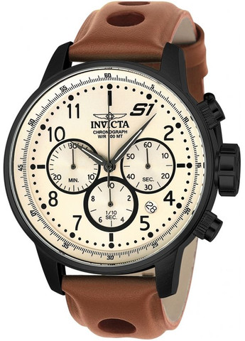 Черный корпус из нержавеющей стали с ионным покрытием и коричневым кожаным ремешком. Безель из черной нержавеющей стали с ионным покрытием. Циферблат слоновой кости с черными стрелками с люминесцентным покрытием и арабскими цифрами. Минутные маркеры по внешнему ободку. Тип циферблата: Аналоговый. Люминесцентные стрелки. Индикатор даты между 4 и 5 часами. Хронограф – три подциферблата, которые отображают: 60 секунд, 60 минут и 24 часа. Кварцевый механизм Hattori калибра VD53. Устойчивое к царапинам пламенное плавление хрустальное стекло. Потяните/нажмите коронку. Жесткая задняя часть корпуса. Круглая форма корпуса. Размер корпуса: 47 мм. Толщина корпуса: 15 мм. Ширина ремешка: 22 мм. Длина ремешка: 8 дюймов. Застёжка Танг. Водонепроницаемость до 100 метров/330 футов. Функции: хронограф, дата, GMT, второй часовой пояс, часы, минуты, секунды. Спортивный стиль часов. Этикетка часов: Japan Movt. Invicta S1 Rally Chronograph с циферблатом цвета слоновой кости мужские часы 23109