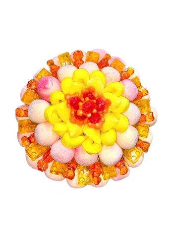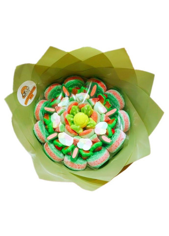 Подарочный сладкий букет из мармелада и маршмеллоу – отличный подарок для близкого человека. Букеты станут вкусным сюрпризом для дорогого человека, независимо от возраста и пола. В букете собрано много видов мармелада, маршмеллоу и жевательных конфет. Вес – 1 килограмм Диаметр – 25-27 см Высота – 30-35 см Упаковка для доставки разработана специально для сохранения формы букета. Кислый мармелад ТМ Fini, ТМ VIDAL, ТМ Damel, ТМ JAKE. Сладкий мармелад ТМ Fini, ТМ VIDAL, ТМ Damel, ТМ Jake. Орехи Маршмеллоу ТМ Bulgari Запеченный мармелад ТМ Fini, ТМ KING REGAL S.A. Страна происхождения: Испания, Италия