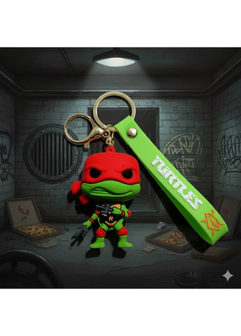 Самый Брутальный Черепашка для Ваших Аксессуаров! Представляем стильный объемный брелок-фигурку с изображением одного из четырех братьев-ниндзя – Рафаэля (Raphael)! Дизайн Рафаэля: Фигурка имеет зеленое тело и одета в красную маску. Рафаэль держит в руках свое фирменное оружие – саи. На животе у него буква "R" (Raphael). Крепление и Декор: Аксессуар оснащен крепким карабином и кольцом золотистого цвета. Он имеет ярко-зеленый ремешок с объемной надписью "TURTLES" и изображением раковины-ниндзя на конце. Размер: Фигурка имеет удобный размер (ориентировочно 6,3 см высотой без учета крепления). Этот брелок идеально подойдет для фанатов классических и современных "Черепашек-ниндзя"!