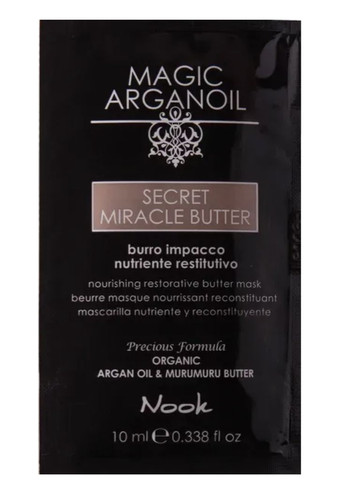 NOOK MAGIC ARGANOIL Secret Nourishing Restorative Butter Mask – это глубоко питательная маска-баттер, которая эффективно восстанавливает сухие, обезвоженные и ослабленные волосы. Формула содержит 91% натуральных ингредиентов, что обеспечивает интенсивное увлажнение и укрепление локонов без утяжеления. Волосы становятся мягкими, блестящими и шелковистыми. Основные преимущества: Интенсивно питает и увлажняет волосы без утяжеления. Восстанавливает сухие, обезвоженные и ослабленные волосы. Делает волосы мягкими, шелковистыми и послушными. Укрепляет структуру волос и улучшает эластичность. Облегчает расчесывание и укладку. Содержит 91% натуральных ингредиентов. Протестировано на содержание металлов: Никель, Хром, Кобальт (<1 PPM). Активные компоненты: Органическое масло аргании – Придает блеск, укрепляет и защищает волосы от повреждений. Масло мурумуру из Амазонии – Восстанавливает структуру волос, улучшает эластичность и глубоко питает. Аромат: Нежный, натуральный аромат с лёгкими ореховыми нотами. Для кого этот продукт: Для обладателей сухих, обезвоженных, повреждённых волос, которым необходимо интенсивное восстановление и питание. Результат: Мягкие, шелковистые, увлажнённые волосы с природным блеском.