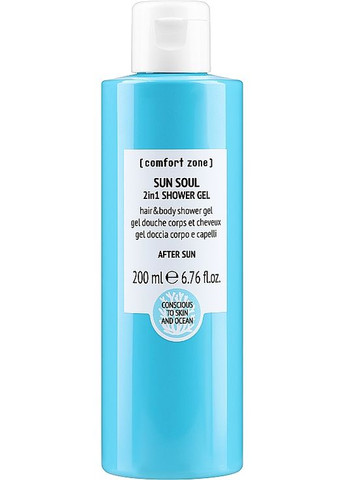 Наслаждайтесь свежестью и чистотой во время принятия душа с многофункциональным гелем и шампунем. Бьюти-продукт от бренда Comfort Zone не только обеспечивает обычную очистку, но и предоставляет уход за волосами и кожей. Sun Soul 2 in 1 Shower Gel имеет увлажняющие и полезные компоненты, глубоко питающие эпидермис, особенно после воздействия солнца, помогая ему восстановиться и чувствовать комфорт. Кроме того, средство прошло дерматологическое тестирование, подтверждающее его безопасность и высокое качество. Особенности Comfort Zone Sun Soul 2 in 1 Shower Gel: - очищает волосяной и кожный покров; - глубоко питает кожу, истощенную действием солнца; - содержит не менее 93 % ингредиентов естественного происхождения; - проявляет смягчающие, увлажняющие свойства, делая поверхность поверхностно-активное вещество из натурального оливкового масла имеет сходный с себумом состав, гарантирует деликатное очищение кожи и волос; - растительные ПАВ из пшеницы, кукурузы, подсолнечника и капусты способствуют эффективному очищению при полном уважении к окружающей среде; силиконов и минеральных масел.
