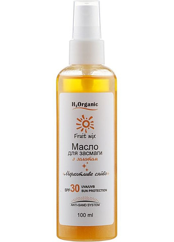 H2Organic – украинский бренд, производящий натуральную косметику. Средство, на которое стоит обратить внимание, если вы собираетесь на отдых – мерцающее масло для загара с золотом. Она обеспечит эффективный уход за кожей, защитит от воздействия ультрафиолетовых лучей, а также наполнит клетки питательной влагой и питательными веществами. Продукт содержит легкий шимер, оказывающий эффект бронзового сияния. Специальная технология Anti-sand System предотвращает налипание песка на кожу, гарантирует комфортные ощущения. Особенности H2Organic Fruit Mix SPF 30: - водостойкая формула; - на основе целебного масла; - пригодна всем типам кожи; - быстро впитывается; - оказывает увлажняющее действие; - не вызывает ощущения липкой пленки; инновационная система Anti-sand System не допускает налипания песка; - мелкий шимер придает коже природного сияния; - способствует безопасному загару; - приятный фруктовый аромат.