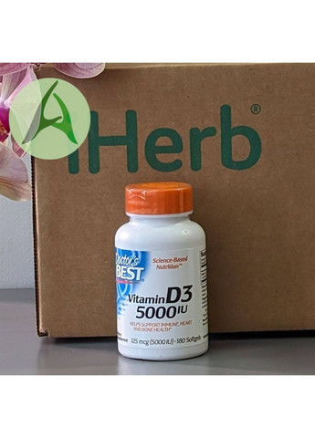 * Science-Based Nutrition| * Помогает поддерживать естественные иммунные реакции, здоровье сердца и костей| * Пищевая добавка| * Без ГМО| * Не содержит глютена| * Не содержит сои| Витамин D3 от Doctor's Best содержит D3 (в виде холекальциферола), необходимый организму для регулирования уровня фосфора и кальция, способствующих здоровью костей, зубов и сердца. Витамин D3 вырабатывается в коже за счет поглощения солнечных УФ-лучей и в ограниченных количествах поступает с пищей. Защита от солнца и климатические факторы могут влиять на низкий уровень витамина D3. Витамин D3 полезен для иммунной и сердечно-сосудистой систем, плотности и структуры костей, а также функционирования клеток. Он играет важную роль в работе большинства органов и систем организма и влияет на химические посредники иммунной системы.| * Помогает регулировать количество кальция и фосфора, необходимых для здоровья костей и зубов.| * Способствует укреплению иммунной системы и сердца.| | РЕКОМЕНДАЦИИ ПО ПРИМЕНЕНИЮ| Рекомендации для взрослых: принимать по 1 капсуле в день во время еды или в соответствии с рекомендациями врача-диетолога.| | ИНГРЕДИЕНТЫ| Масло оливковое нерафинированное первого холодного отжима, капсула (желатин, глицерин, очищенная вода).| | ПРЕДУПРЕЖДЕНИЯ| Хранить в сухом и прохладном месте.| | Пищевая ценность| Размер порции: 1 капсула| Порций в упаковке: 180| Количество в 1 порции % от суточной нормы| Витамин D3 (в виде холекальциферола) 125 мкг (5000 МЕ) 625%
