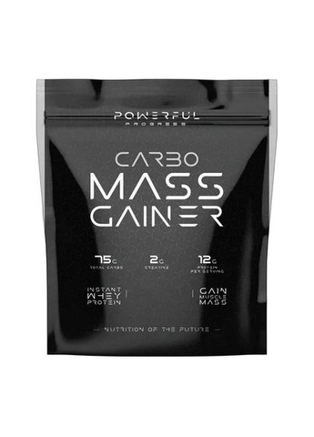 Сarbo Mass Gainer от бренда Powerful Progress – высокоэффективный гейнер с высоким содержанием углеводов, достаточным содержанием белка, креатина и комплексом аминокислот. Этот продукт разработан именно для тех новичков спорта, для которых наращивание качественной мышечной массы – главная цель. Формула гейнера содержит минимальное количество вкусовых добавок и ароматизаторов, поэтому этот продукт можно смело назвать действительно натуральным. Стоит добавить, что протеин содержит исключительно натуральный концентрат белка, который изготавливается из молока на немецких молочных фермах, а также натуральные вкусовые добавки известной немецкой фирмы «Condetta», делая углеводно-белковый коктейль нежным, легким и невероятно вкусным. В одной порции удалось сконцентрировать 12 г чистого белка, 2 г креатина моногидрата и целых 75 г углеводов различной сложности, что позволяет набрать качественную мышечную массу даже новичкам спорта. Гейнер содержит 80% концентрата сывороточного белка с повышенной степенью очистки. Для повышения эффективности гейнера в него добавлена ценная аминокислота - L-глютамин, которая помогает быстро восстанавливать организм после тренировок. Еще одна интересная особенность Carbo Mass Gainer – это большое количество в составе различных витаминов, полезных организму веществ и минералов. Ключевые преимущества гейнера Carbo Mass Gainer: 12 грамм белка, 2 г креатина и 75 грамм углеводов на порцию. Отсутствие лактозы и глютена. 25 видов витаминов и аминокислот. Натуральные вкусовые добавки и компоненты немецкого производства. Состав в одной порции (100 г): Энергетическая ценность - 388 ккал Жиры - 4 г ненасыщенные жирные кислоты - 1 г Углеводы - 75 г сахар - < 4 г Протеин – 12 г Натрий – 140 мг Холестерин - 15 мг Аминокислоты: L-аланин - 561 мг L-аргинин - 219 мг L-аспарагиновая кислота - 1368 мг L-цистин - 218 мг L-глютамин - 2194 мг L-глицин - 218 мг L-гистидин - 297 мг L-изолейцин - 594 мг L-лейцин - 1466 мг L-лизин - 1215 мг L-метионин - 265 мг L-фенилаланин - 415 мг L-пролин - 688 мг L-серин - 409 мг L-треонин - 594 мг L-триптофан - 250 мг L-тирозин - 426 мг L-валин - 445 мг Другие ингредиенты: Мальтодекстрин, концентрат сывороточных белков, моногидрат креатина, глюкоза, динатрий фосфат, дигидрофосфат калия, сукралоза, магния фосфат, комплекс витаминов и аминокислот, натуральные ароматизаторы. Рекомендации по применению:Смешайте в шейкере 3 мерные ложки (100 г) гейнер с 450-500 мл воды или обезжиренного молока. Тщательно размешайте в шейкере. Принимайте: в тренировочные дни 2 раза в день между приемами пищи и 1 раз после тренировки. в дни отдыха 2 раза в день между приемами пищи. Предупреждения: Не использовать, если у вас аллергия на какое-либо из соединений. Не превышать рекомендуемую суточную дозу. Хранить в недоступном для детей месте. Защищать от прямых солнечных лучей и хранить в сухом прохладном месте.