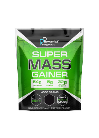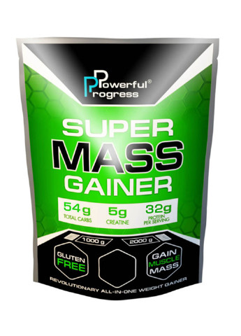 Super Mass Gainer – уникальный высокоэффективный гейнер с прилично высоким уровнем содержания протеина и отлично подобранным комплексом углеводов. Этот уникальный продукт разработан именно для тех новичков спорта, для которых наращивание качественной мышечной массы – основная цель. Гейнер очень хорош по соотношению цена/качество, что позволяет купить эту спортивную добавку практически каждому. В состав гейнера входит усиленный углеводный комплекс, повышенная доля белка и еще один важный элемент – моногидрат креатин. Еще одна немаловажная особенность Super Mass Gainer компании Powerful Progress – это большое количество различных витаминов, полезных организму веществ и минералов. Гейнер содержит 31% высокобелкового сывороточного протеина всемирно известного бренда Milkiland EU высшего качества с безупречным по составу аминокислотным профилем. Креатин – это еще один важный компонент гейнера Super Mass, обеспечивающий действительно эффективный рост силы и мышечной массы атлета. Одна порция гейнера совмещает 32 грамма белка, 5 граммов креатина моногидрата и 47 граммов углеводов. Для повышения эффективности гейнера, в него добавлена ценная аминокислота – L-глютамин. Гейнер выпускается с выбором четырех популярных вкусов: шоколад, ваниль, банан и клубника. Специальные натуральные ароматизаторы и подсластители немецкой фирмы «Destilla GmbH» сделали этот гейнер полностью безопасным и вкусным – любители сладких вкусов оценят этот углеводно-белковый коктейль. Эта спортивная добавка очень приятна по вкусу, идеально усваивается и легко пьется как с водой, так и с молоком. особенности: высокий процент белка (31%) и креатина. быстрый рост мышечной массы. ценный источник энергии и протеинов комплекс витаминов и биологически активных компонентов.