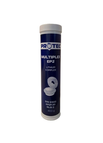 Универсальная смазка Protec Multiplex EP2 (400 г) паста многоцелевая PROTEC Multiplex EP2 – высокоэффективная многоцелевая комплексная литиевая смазка, предназначенная для работы в жестких условиях при повышенных температурах, нагрузках (в том числе ударных) и вибрации. В состав смазки входят антиокислительные, противоизносные, противозадирные, антикоррозионные присадки, обеспечивающие длительную и надежную эксплуатацию узлов трения в широком диапазоне температур. PROTEC Multiplex EP2 рекомендуется для узлов трения ходовой части, подшипников и шарниров легковых и грузовых автомобилей, работающих в легком и тяжелом режимах, а также для различного промышленного оборудования (горнодобывающее, литейное и др.). Данное масло отлично защищает высоконагруженные подшипники скольжения, подшипники качения, шарниры и другие виды узлов трения. Комплектация: Смазка Protec - 1 шт