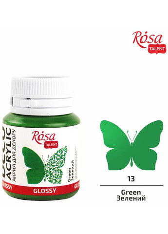 Акрил для декора ROSA TALENT сочетает в себе свойства, которые делают декоратор легкой и приятной. Особенности: - Сливочная консистенция обеспечивает равномерное нанесение. - Высокая укрывистость позволяет легко закрасить поверхность. - Цвета краски идеально подходят для стилей шеби шик, винтаж, прованс и классика. Матовые, глянцевые, перламутры и металлики - разнообразие цветов и эффектов удовлетворят самого взыскательного декоратора. Акрил для декора одинаково хорошо наносится на поверхности из дерева, фанеры, ДВП, МДФ, бумаги, картона, грунтованного полотна, природного камня, кирпича. Акриловые краски можно разбавлять водой, а также смешивать цвета между собой, получая новые оттенки. После высыхания краски образуют несмываемую пленку, позволяющую использовать декорированные вещи в быту. Постоянно находящиеся в пользовании изделия для дополнительной защиты рекомендуем покрыть лаком на водной основе. С течением времени краски остаются стойкими и сохраняют свой яркий цвет.