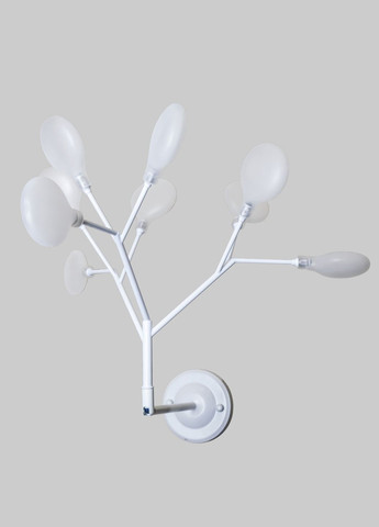 Материал - металл, стекло Цвет металла - белый Цвет стекла - белый матовый цвет Источник света - 9 Цоколь патрона - G4 Размер - 57х42см (ш/у) Основание до стены - 12см Расстояние от стены - 54см