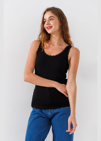 Майка из мягкой трикотажной ткани, с отделкой из кружева и круглым вырезом, спереди внизу слева с вышивкой логотипа бренда.
