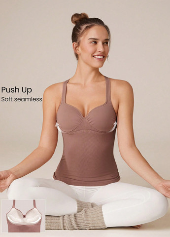 Короткая майка-бюстье на тонких регулирующихся бретельках с чашечками без косточек и дополнительной резинкой с внутренней стороны, задняя часть полупрозрачная, внизу вшитые четыре регулирующиеся подвязки.