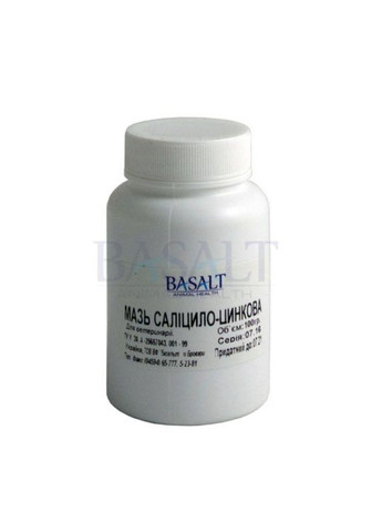 Описание: Однородная, густая масса, белого или светло-желтого цвета. Состав: 100 г мази содержат салициловую кислоту 2 г, цинка оксида 25 г; вспомогательные вещества. Фармакологические свойства: Мазь салицилово-цинковая антисептический препарат, который имеет противомикробное, вяжущее, противовоспалительное и подсушивающее действие. Используют только местно и наружно, оказывает кератолитическое, антисептическое, местнораздражающее и противовоспалительное действие. Продолжительность курса лечения от 6 до 20 суток. Побочное действие Возможны местные реакции в виде гиперемии, сыпи на коже. Аллергическую реакцию компоненты пасты. Повышенная чувствительность к компонентам препарата. Форма выпуска: Препарат фасуют в стеклянные банки по 60, 150, 250, 1000 мл, пластмассовые банки по 500 мл или пластмассовые тубы по 20, 60, 90 мл. Хранение: 25°С. Срок годности: 5 лет.
