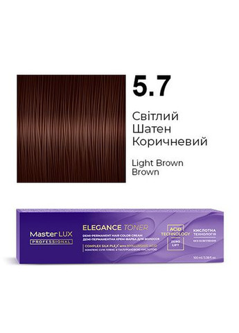 Благодаря технологии кислотного рН краска не освещает натуральную базу и волосы выглядят блестящими. Идеально для тонирования волос после обесцвечивания (в техниках мелирования, Shatush (Шатуш), AirTouch (Aйр Тач) и других). Не содержит аммиака. Не окрашивает седину. Формула крем-краски с Сomplex SILK PLEX (Комплекс Силк Плекс) и гиалуроновой кислотой способствует дополнительному уходу и увлажнению. Краску можно использовать в двух техниках нанесения: кисточкой или аппликатором. Все цвета ELEGANCE TONER можно смешивать меж собой. 1.Рекомендации по смешиванию. Смешивайте только с подходящим окислителем, всегда в пропорции 1:1: – Крем-окислитель Master LUX professional 1,9% или 3% – для создания более густой консистенции для нанесения кисточкой. Пример: 1 часть крем-краски Master LUX professional ELEGANCE TONER + 1 часть крем-окислителя Master LUX professional 1,9% или 3% – жидкий окислитель Master LUX professional 1,9% – для создания жидкой консистенции для нанесения флаконом-аппликатором. Пример: 1 часть крем-краски Master LUX professional ELEGANCE TONER + 1 часть жидкого окислителя Master LUX professional 1,9% 2.Нанесение Наденьте защитные перчатки. Продукт можно наносить с помощью кисточки или флакона-аппликатора. Кисточка: Нанесите равномерно смесь от корней до кончиков на чистые влажные волосы. Флакон-аппликатор: Нанесите равномерно смесь на прикорневую зону по пробору волос. Затем обильно нанесите краску по всей длине до кончиков волос. 3.Время выдержки: до 20 минут. В зависимости от структуры волос и желаемой интенсивности оттенка. 4. Смывание По истечении времени выдержки нанесите небольшое количество теплой воды на волосы и сделайте легкий массаж для эмульгации крем-краски, затем полностью смойте ее водой. Вымойте волосы кислотным шампунем после окрашивания Post Color Master LUX professional и нанесите кислотный бальзам после окрашивания Post Color Master LUX professional.