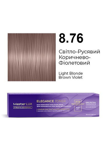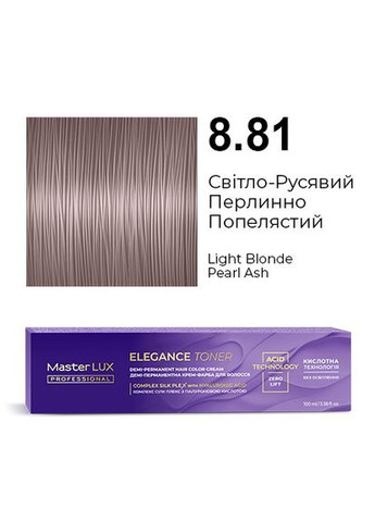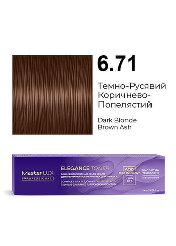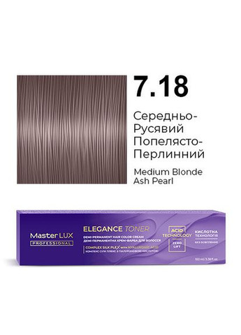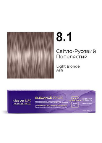 Благодаря технологии кислотного рН краска не освещает натуральную базу и волосы выглядят блестящими. Идеально для тонирования волос после обесцвечивания (в техниках мелирования, Shatush (Шатуш), AirTouch (Aйр Тач) и других). Не содержит аммиака. Не окрашивает седину. Формула крем-краски с Сomplex SILK PLEX (Комплекс Силк Плекс) и гиалуроновой кислотой способствует дополнительному уходу и увлажнению. Краску можно использовать в двух техниках нанесения: кисточкой или аппликатором. Все цвета ELEGANCE TONER можно смешивать меж собой. 1.Рекомендации по смешиванию. Смешивайте только с подходящим окислителем, всегда в пропорции 1:1: – Крем-окислитель Master LUX professional 1,9% или 3% – для создания более густой консистенции для нанесения кисточкой. Пример: 1 часть крем-краски Master LUX professional ELEGANCE TONER + 1 часть крем-окислителя Master LUX professional 1,9% или 3% – жидкий окислитель Master LUX professional 1,9% – для создания жидкой консистенции для нанесения флаконом-аппликатором. Пример: 1 часть крем-краски Master LUX professional ELEGANCE TONER + 1 часть жидкого окислителя Master LUX professional 1,9% 2.Нанесение Наденьте защитные перчатки. Продукт можно наносить с помощью кисточки или флакона-аппликатора. Кисточка: Нанесите равномерно смесь от корней до кончиков на чистые влажные волосы. Флакон-аппликатор: Нанесите равномерно смесь на прикорневую зону по пробору волос. Затем обильно нанесите краску по всей длине до кончиков волос. 3.Время выдержки: до 20 минут. В зависимости от структуры волос и желаемой интенсивности оттенка. 4. Смывание По истечении времени выдержки нанесите небольшое количество теплой воды на волосы и сделайте легкий массаж для эмульгации крем-краски, затем полностью смойте ее водой. Вымойте волосы кислотным шампунем после окрашивания Post Color Master LUX professional и нанесите кислотный бальзам после окрашивания Post Color Master LUX professional.