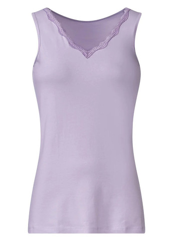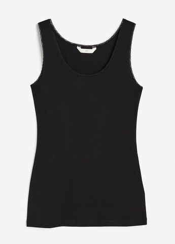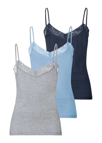 • Майка на тонких бретелях с кружевной вставкой по декольте, выглядящая нежно и элегантно;