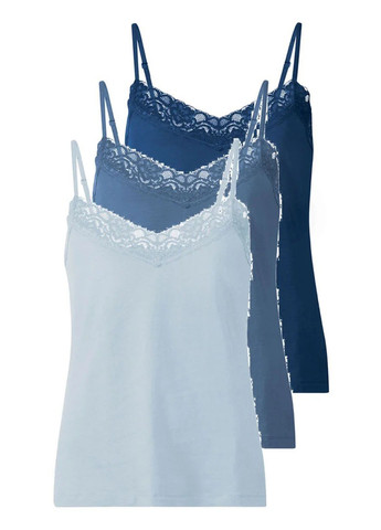Набор из трех хлопковых маек на тонких брителях, с кружевными вставками.