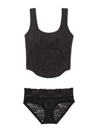 Комплект белья Victoria´s Secret Pink. Шикарный комплект, который состоит из корсетного топа и трусиков. Этот корсет подчеркивает вашу естественную форму, обеспечивая при этом идеальный легкий подъем, соответствующий размеру вашей чашки. Бюстгальтер без косточек украшен очаровательным цветочным кружевом  и обеспечивает достаточное покрытие, чтобы показать его, не беспокоясь о том, что он будет прозрачным. Есть сетчатая подкладка. Облегающий корсет, который можно носить как нижнее белье, так и основной элемент образа. Кружевные трусики Victoria´s Secret PINK. Трусики хипхаггеры порадуют Вас удобной посадкой, приятным к телу материалом. Сверхмягкое цветочное кружево с технологией Forever Stretch. Ластовица из хлопковой панели. Мягкий и приятный к телу материал нежно ложится на кожу. Отличное качество.