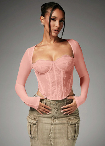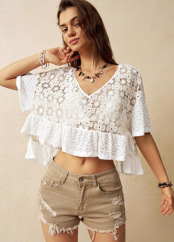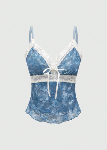 Топ имеет драпированные бретели и дизайн с перекрещенной спиной. Верх имеет складки для дополнительной детализации и кружевную отделку для элегантного образа. Он изготовлен из полиэстера, не имеет карманов, имеет классический крой, классический вырез и неэластичный материал.
