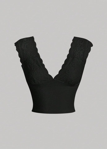 Топ имеет драпированные бретели и дизайн с перекрещенной спиной. Верх имеет складки для дополнительной детализации и кружевную отделку для элегантного образа. Он изготовлен из полиэстера, не имеет карманов, имеет классический крой, классический вырез и неэластичный материал.